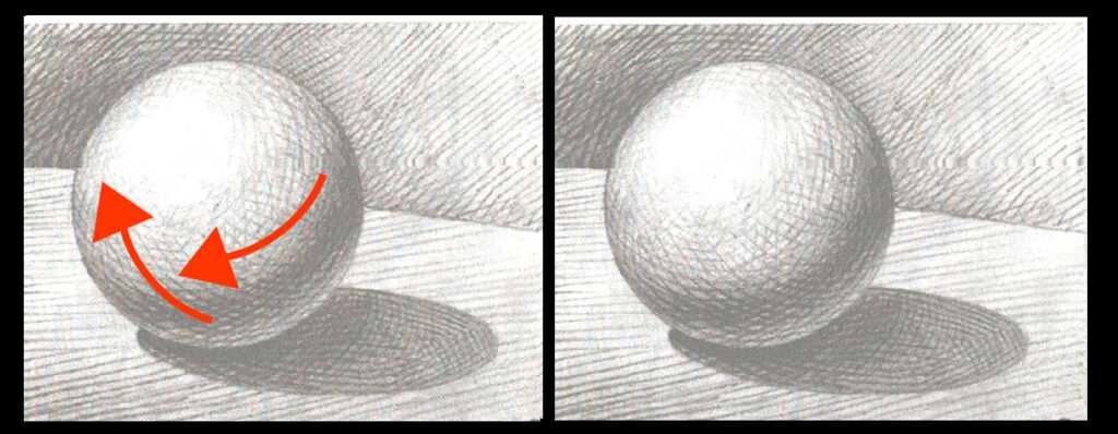 Рисуя шар, обратите внимание, что границы на нем — эллипсы или линии