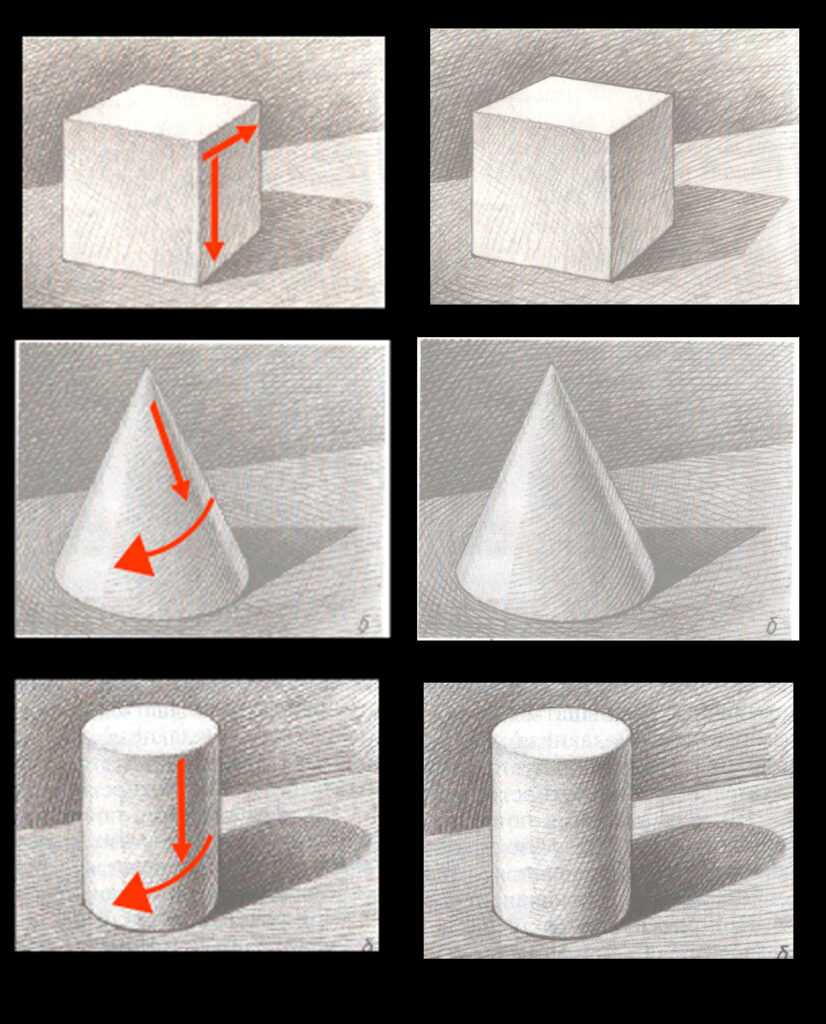 Когда мы рисуем с натуры, мы изображаем падающие тени на глаз. Но для того чтобы изображать их более достоверно, полезно понимать, как они образуются и как их можно построить.