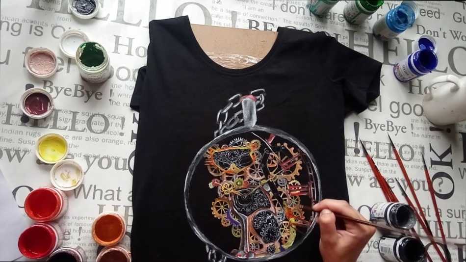Для того, чтобы рисунки на футболках как можно дольше сохраняли свои оттенки красок, понадобятся специальные акриловые краски. Их продают в специализированных магазинах для творчества. Цены на такие материалы не очень высокие.