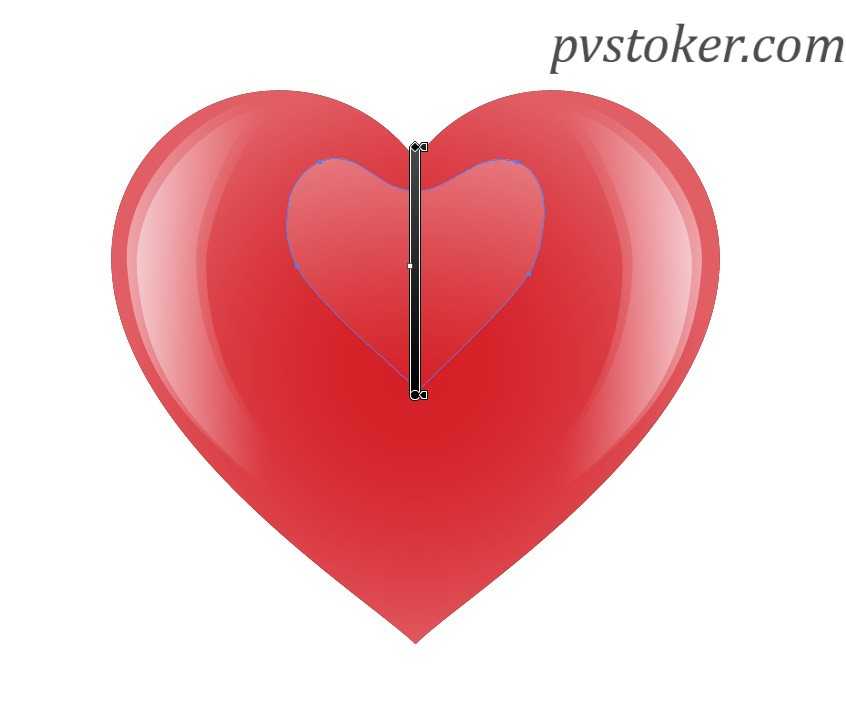 Теперь можно создать блик внутри сердца используя инструмент Перо. Аналогичным образом применяем к нему линейный градиент и режим наложения.