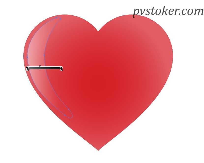 К созданному нами сердцу применяем градиентную заливку от темно красного к светло красному, как показано на рисунке ниже.