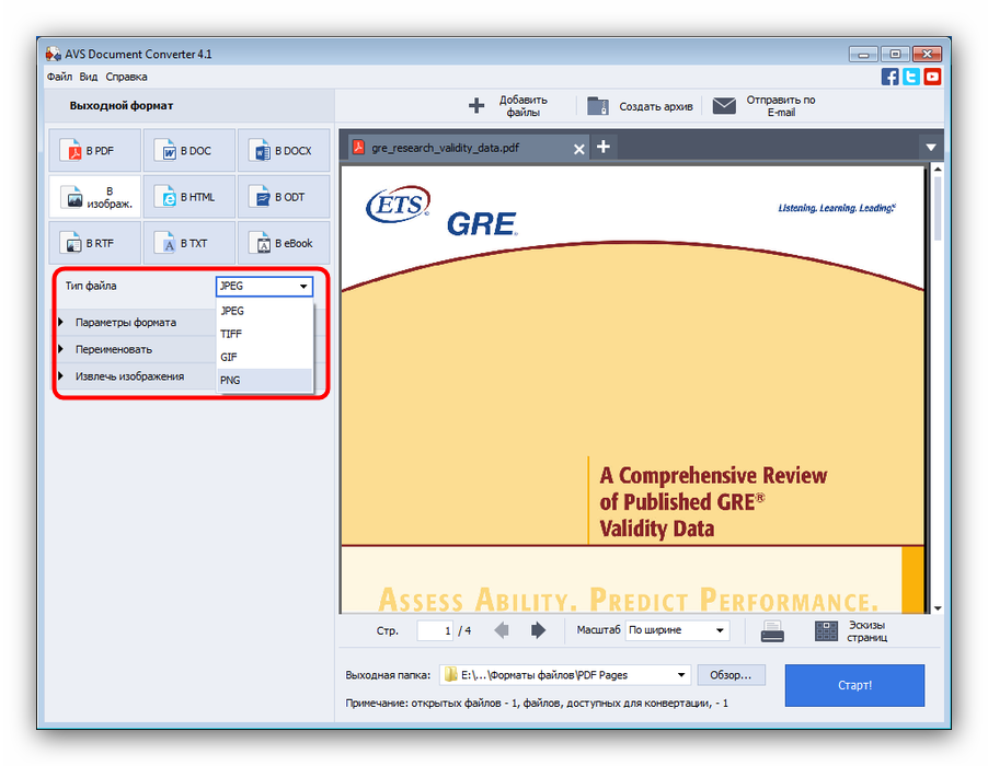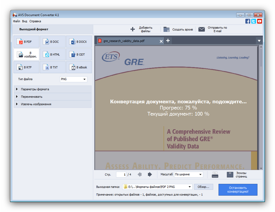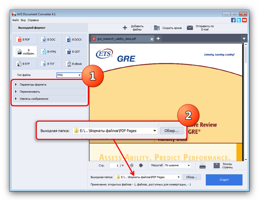 Перед началом преобразования можете воспользоваться дополнительными параметрами, а также настроить выходную папку, куда будут помещены результаты конвертирования.