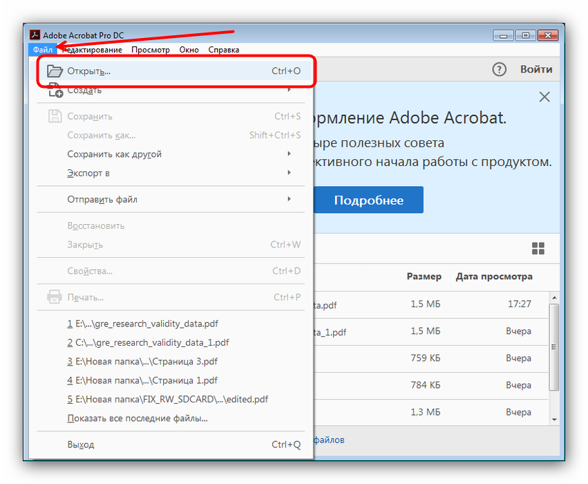 Adobe Acrobat является самой популярной программой для открытия файлов формата PDF, поэтому рассмотрим данный способ на ее примере.