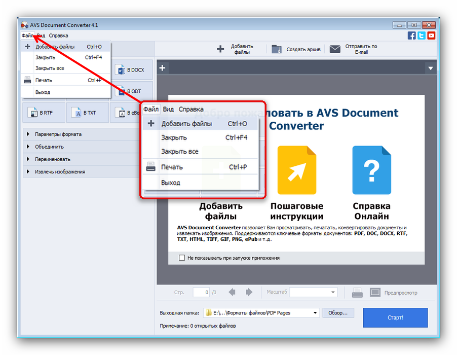 - Запускайте программу и используйте пункты меню «Файл» – «Добавить файлы…».