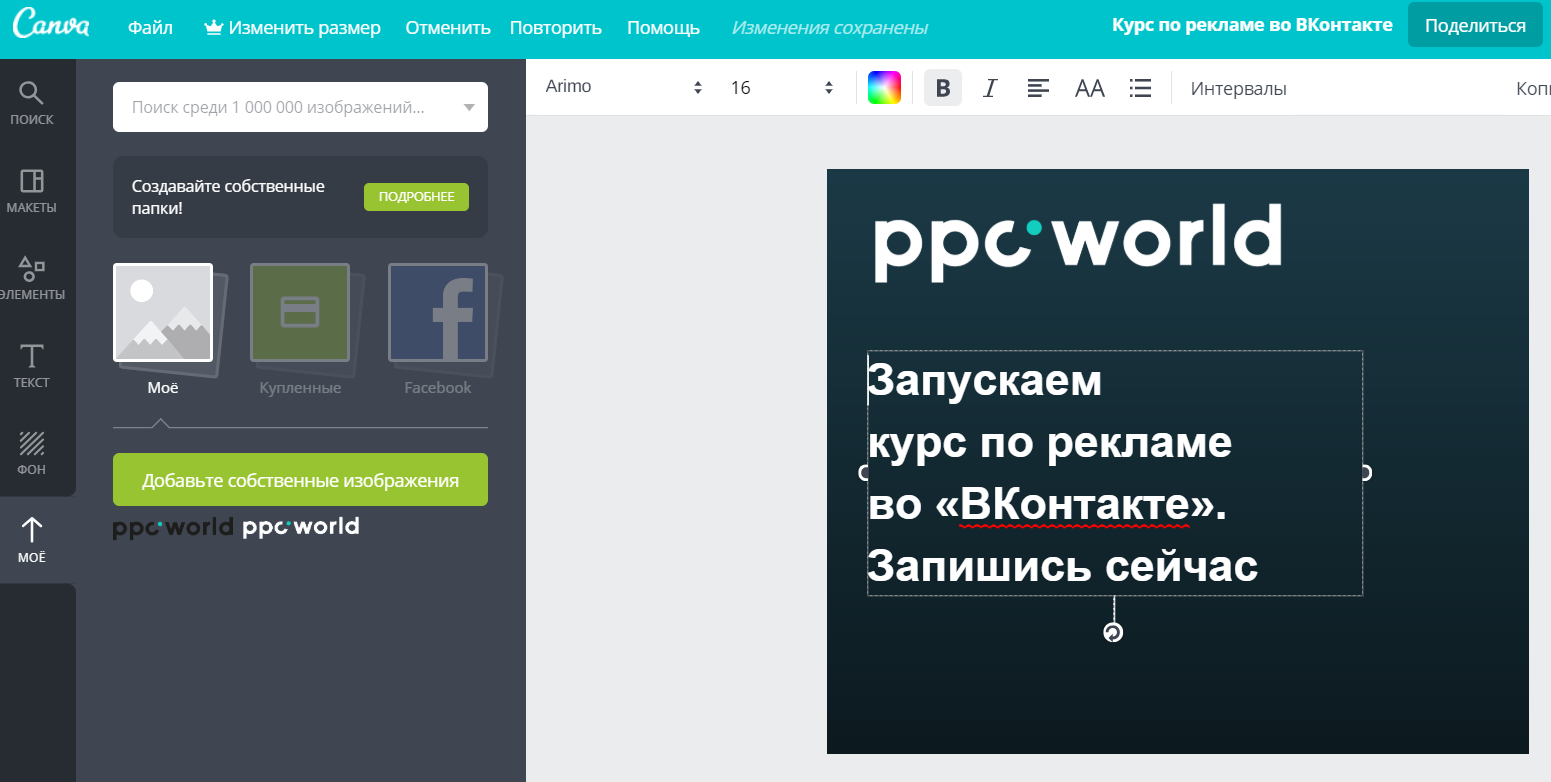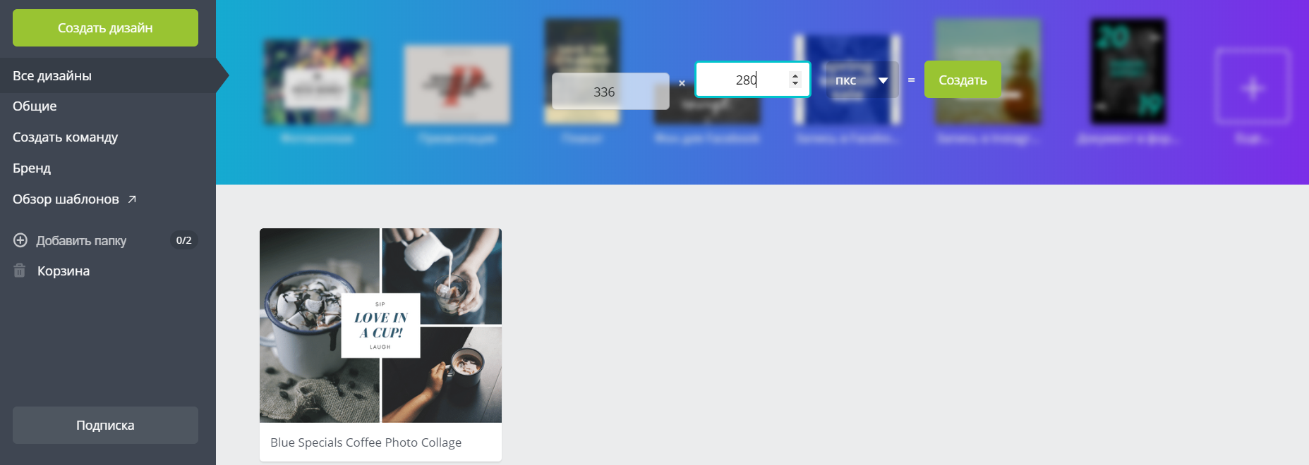 Сервис считается одним из самых популярных инструментов для создания графического контента. В нем много шаблонов открыток, постеров, презентаций, есть специальные форматы для соцсетей Facebook и Instagram.