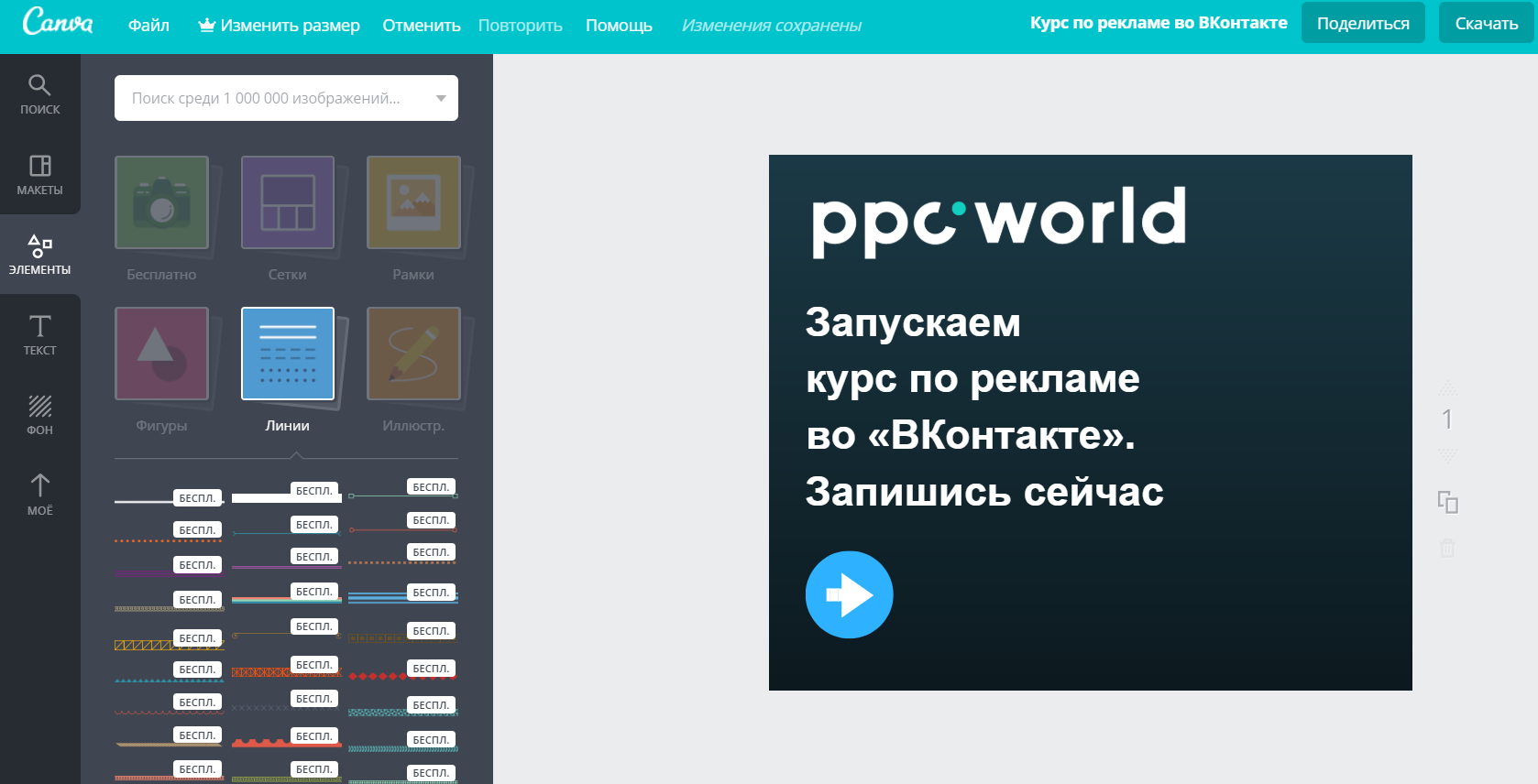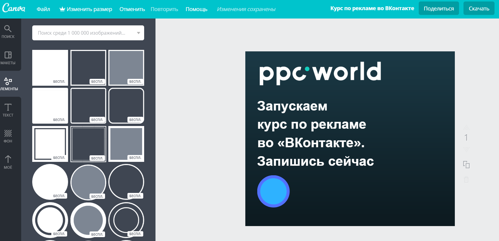 Сохраняем то, что у нас получилось, нажав «Скачать» в верхнем правом углу, и аналогичным образом делаем остальные баннеры: