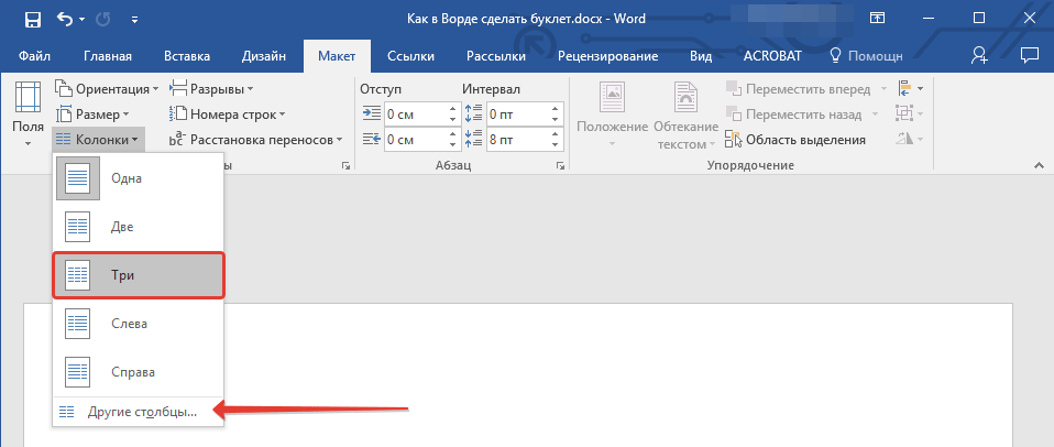 Как сделать буклет или брошюру в Ворде