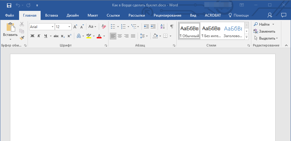 Примечание: В файле уже может содержаться текст будущего буклета, но для выполнения необходимых действий удобнее использовать пустой документ. Мы будем работать именно с таким вариантом.