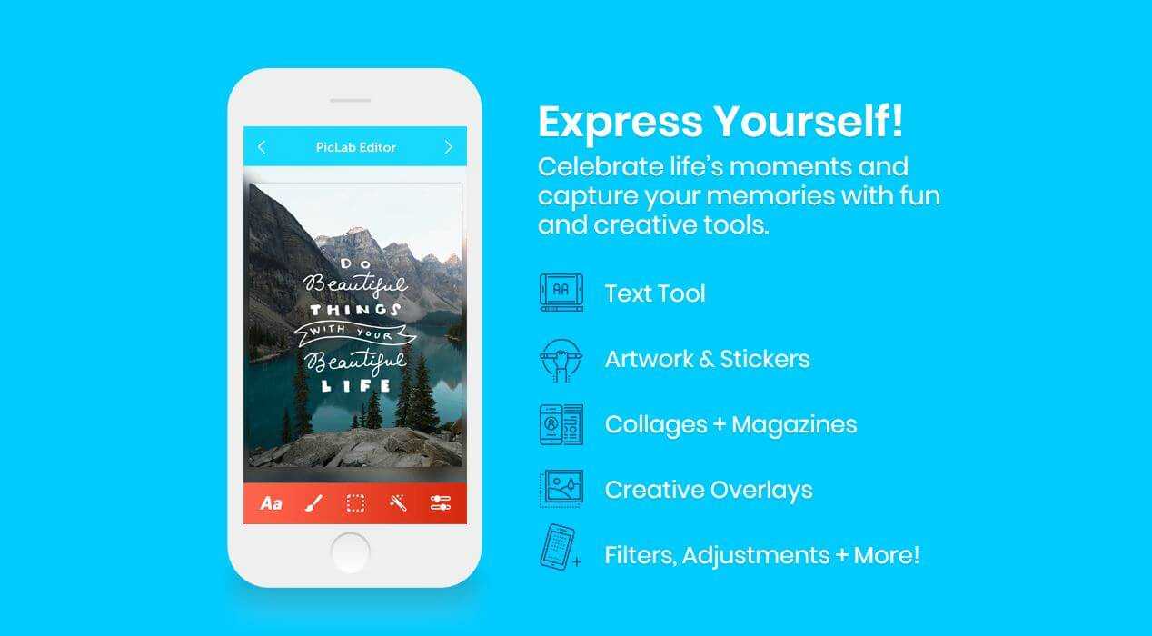 В пиксарте можно объединять фотографии в настраиваемые коллажи, добавлять художественный шрифт. Встроенный полнофункциональный модуль камеры включает в себя эффекты предварительной съемки и фотоинструменты.