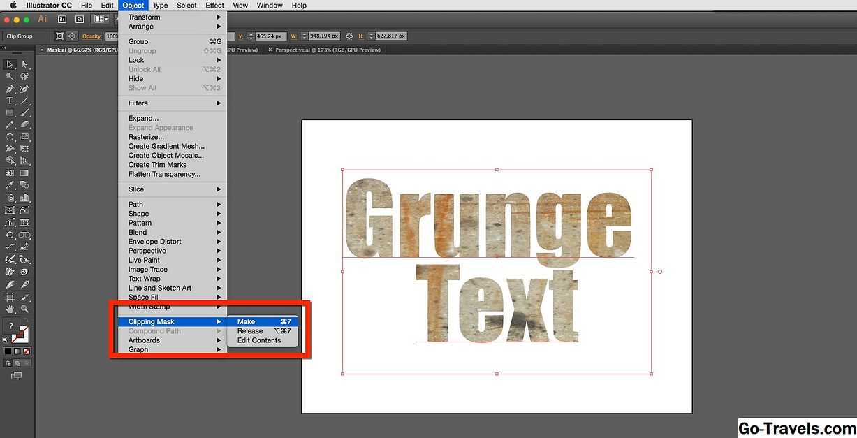 Что делает этот «неразрушающий» способ, вы можете использовать текстовый инструмент, чтобы выделить текст и исправить опечатки или ввести новый текст, не нарушая маски. Вы также можете щелкнуть по тексту и переместить его, чтобы искать другой «вид». И наоборот, вы можете выбрать объект на монтажной панели и, выбрав объект > Обрезная маска > Изменить содержание, перемещайте либо изображение, либо текст вокруг.