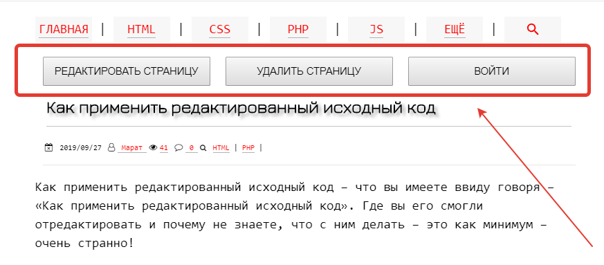 Теперь разберемся с новым заголовком, как происходит процесс редактирования сайта с сохранением изменений.На вашем сайте должен быть соответствующий алгоритм, который может открыть,
