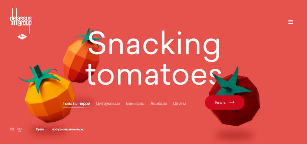 Сайт марокканского поставщика фруктов и цветов Delassus оформлен в теплых, ярких и аппетитных тонах. Источник