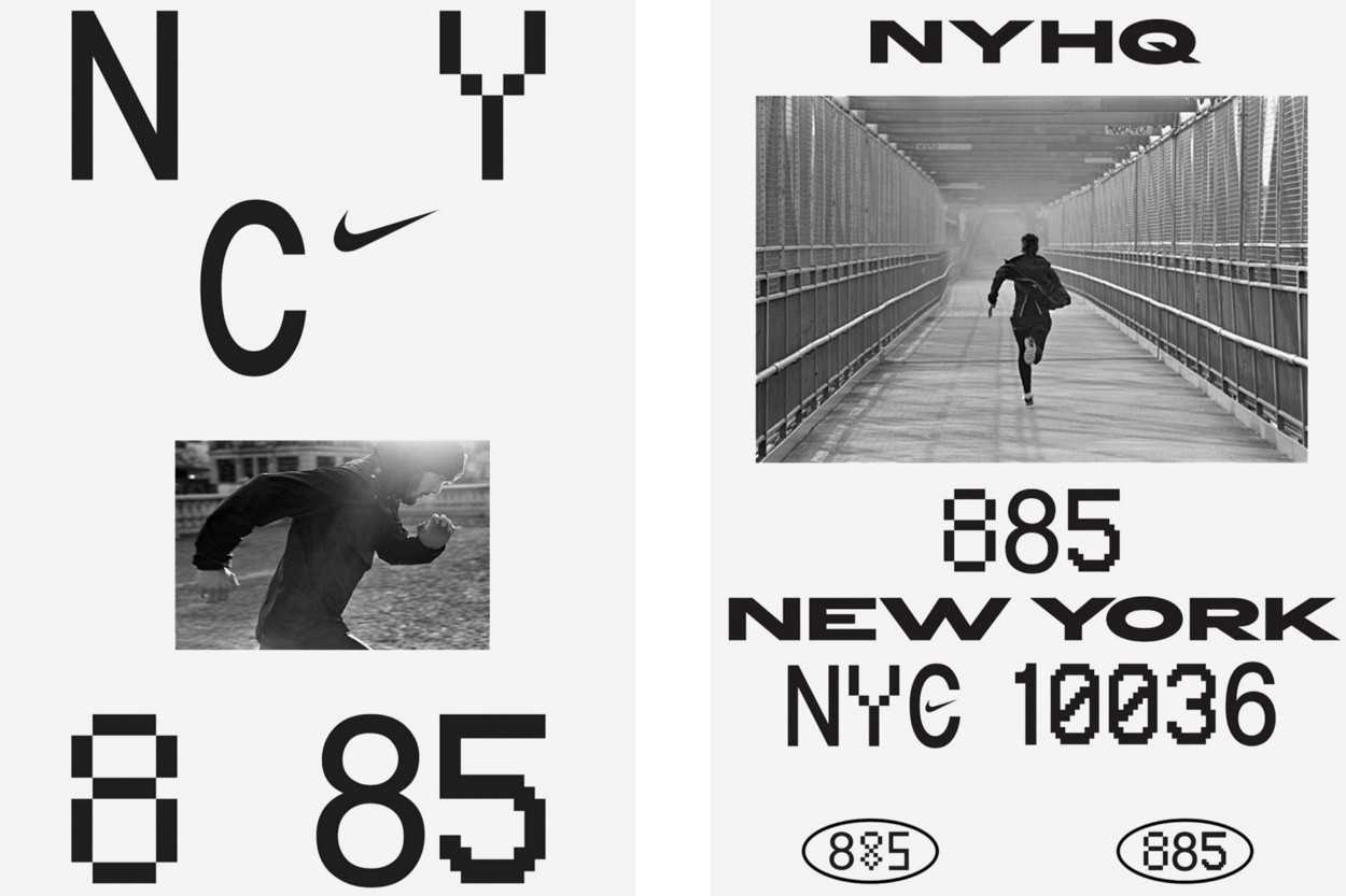 В макете Nike шрифт не является фокальной точкой, но используется для усиления ощущения движения на фотографии. С левой стороны, вытащенная влево С и расположенное рядом лого Nike резонируют с отведенной назад рукой спринтера, запечатленного на фото ниже. Изображение обрезано так, чтобы показать ровно такую часть ног бегуна, по которой будет понятно, что его правая нога приподнята и устремлена вперед, а левая вытянута позади, а разбивка 8 85 внизу служит абстрактным представлением его корпуса.