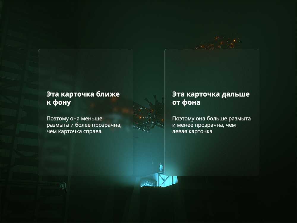 Чем ближе плашка в стиле глассморфизма к фону, тем меньше размытие фона.