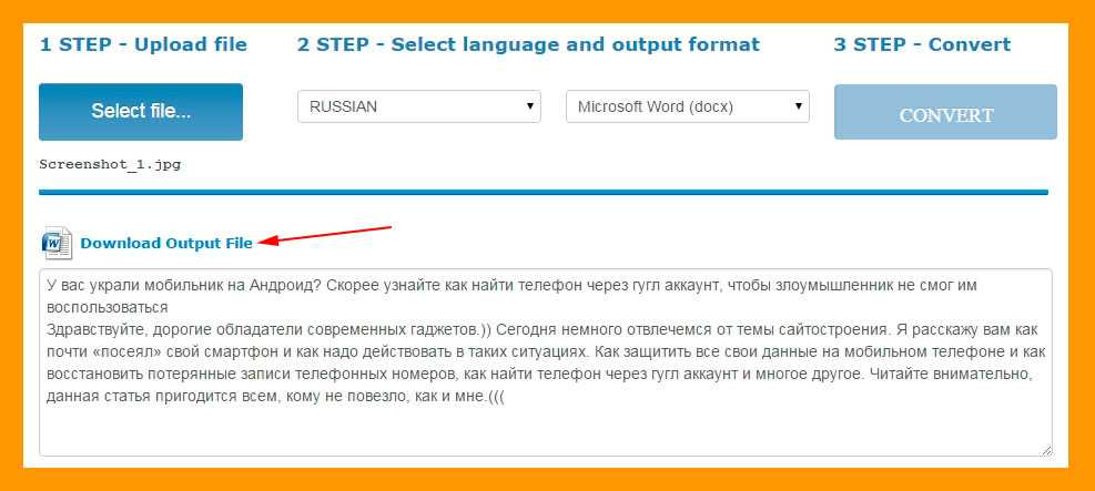 Вы, конечно, можете вручную набрать материал, но что если текст очень длинный? В этой ситуации, мы обращаемся за помощью к сервису ОСR — сайт http://www.onlineocr.net. ОСR (происходит от английского названия: оптическое распознавание символов) – это набор методов или программного обеспечения для распознавания знаков и полных текстов в графических файлах в форме растра.