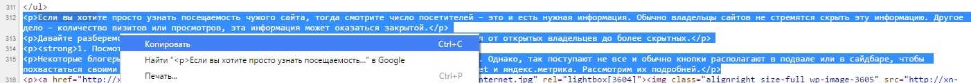 Если же сайт вовсе не позволяет выделить текст, то тогда можно скопировать текст, вызвав окно с исходным кодом страницы. В большинстве браузеров данное окно вызывается комбинацией клавиш Ctrl + U.