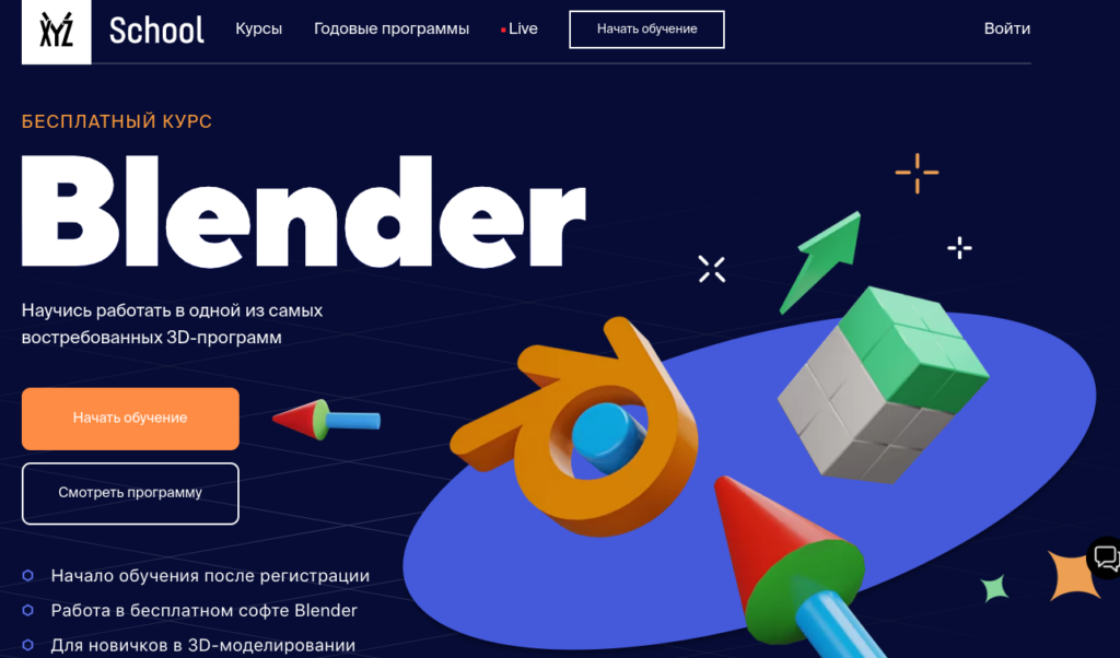 Обучаться начать можно сразу после бесплатной регистрации. Ты научишься работать в Blender — одной из лучших программ для 3D моделирования.