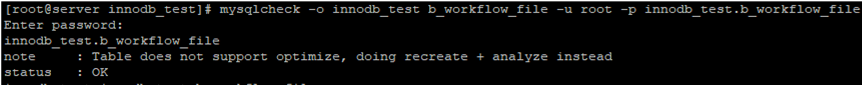 # mysqlcheck -o innodb_test b_workflow_file -u root -p innodb_test.b_workflow_file