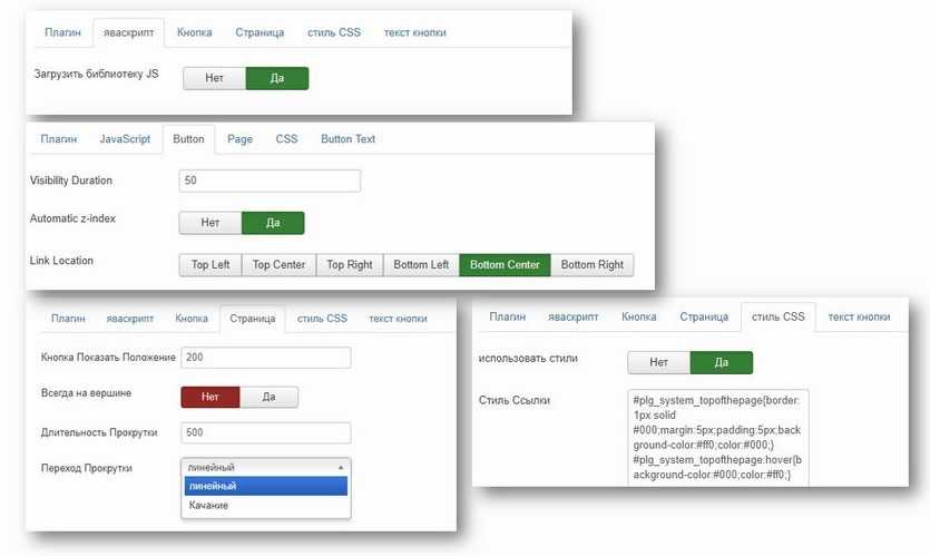 - Настраивается расстояние от верха страницы, при котором появляется кнопка «вернуться наверх» (на коротких страницах кнопка не видна).