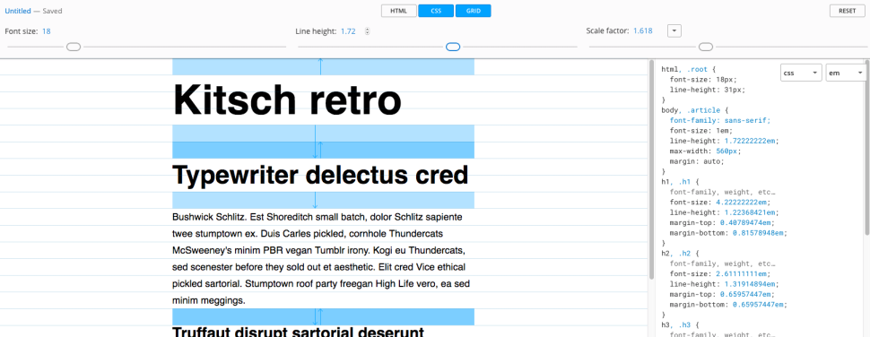 Используйте ползунки, чтобы увидеть различные комбинации размеров шрифта, высоты строк и так далее. (Изображение предоставлено: Gridlover)