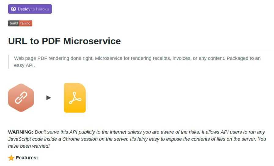URL to PDF – это самодостаточный API-интерфейс, который позволяет преобразовывать HTML-код в PDF-файлы. Он удобен для рендеринга квитанций, счетов-фактур или любого другого содержимого HTML. По умолчанию API игнорирует правила CSS @media print страницы и настраивает Chrome для эмуляции экрана @media, чтобы стандартный PDF-файл больше походил на реальный сайт. Вы можете настроить его на автоматическую работу через равные промежутки времени. И, что самое главное, он абсолютно бесплатен.