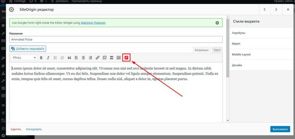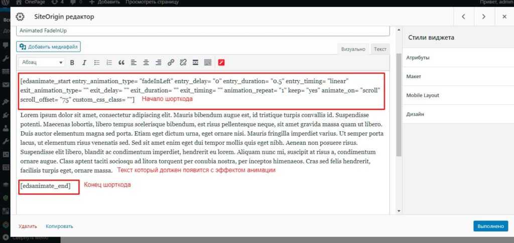 Настройка анимации в редакторе wordpress