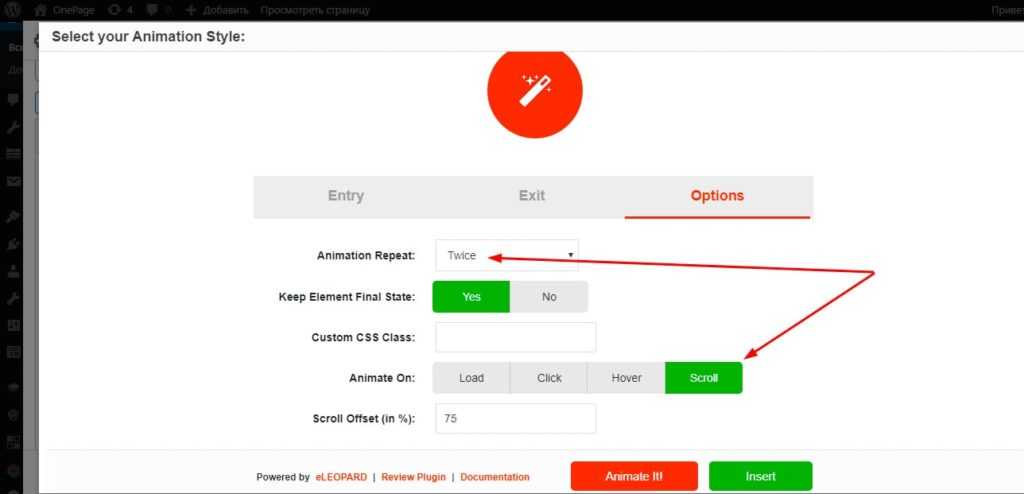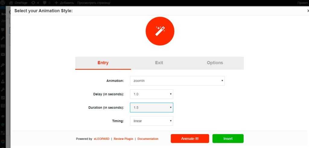 Интеграция анимации в редакторе wordpress с помощью плагина Animate Me