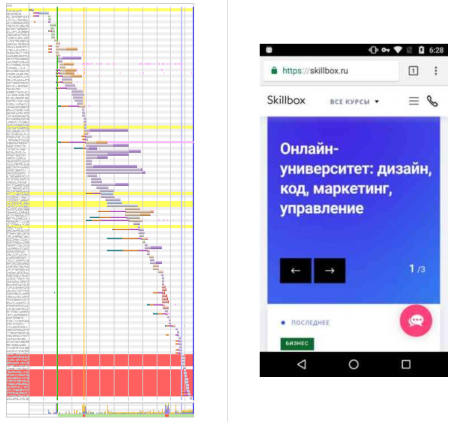 Слева: порядок загрузки элементов заглавной страницы skillbox.ru