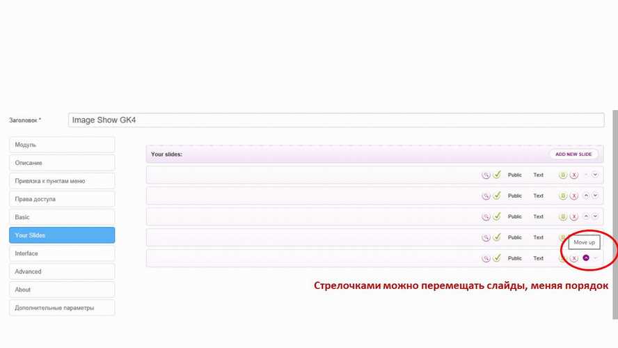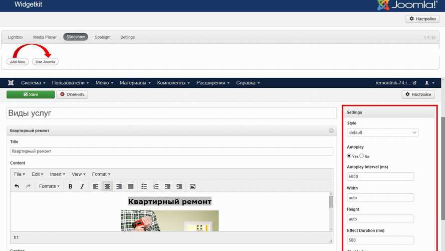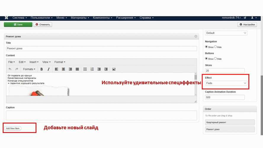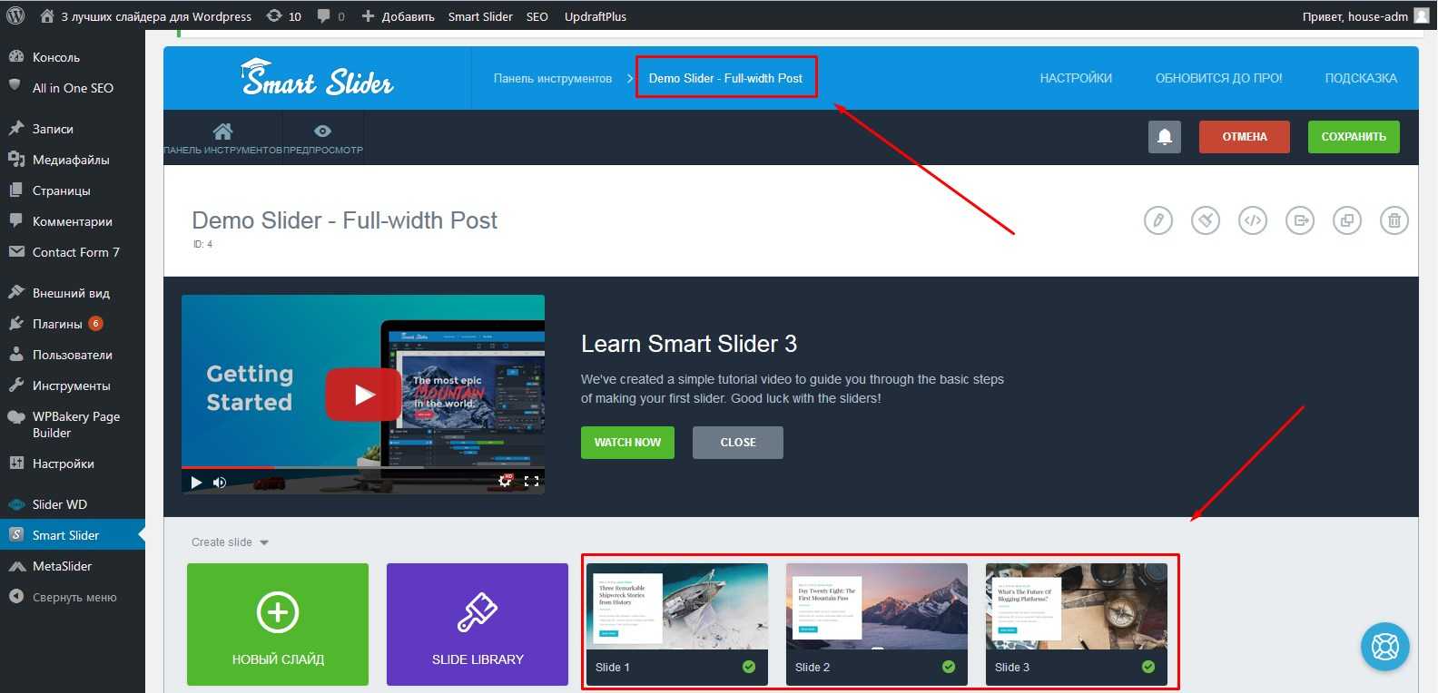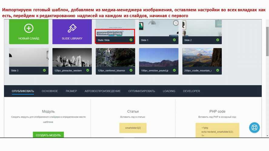 После того как слайдер будет импортирован, перед нами откроется страница редактирования и настройки.