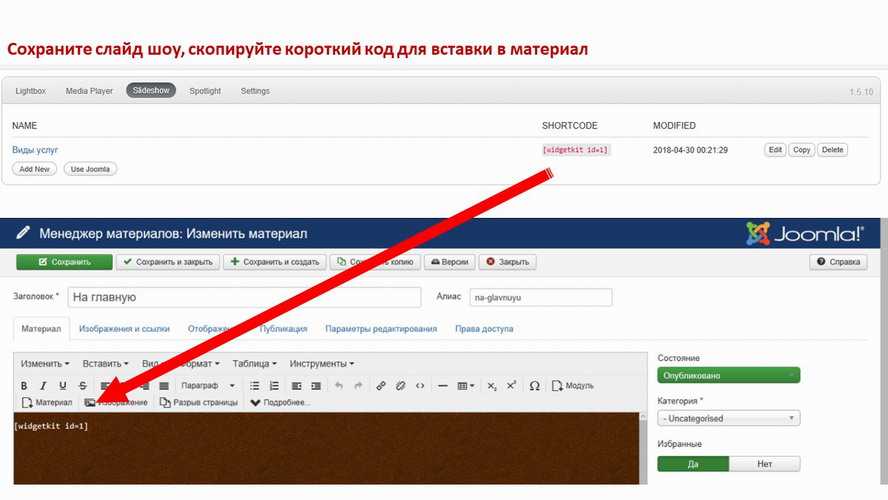 1.Пролистываем страницу вниз до раздела с вкладками. Первая активная вкладка, доступная для редактирования, это вкладка «Опубликовать». Здесь, в первую очередь, для нас важны поле с шорткодом для вставки слайдера на страницу сайта, и поле с php-кодом для вставки слайдера в шаблон страницы: