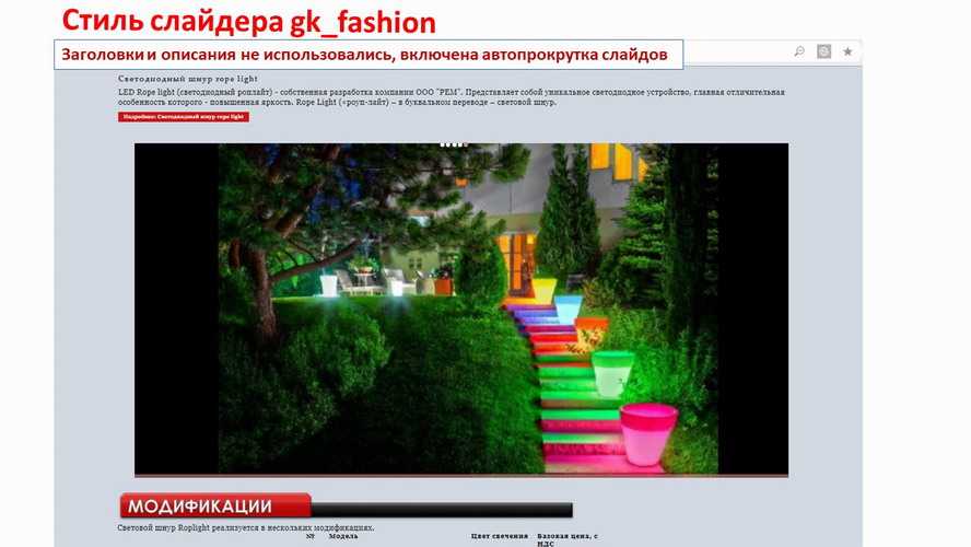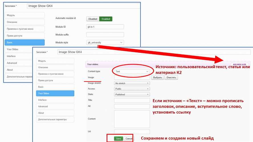 Последняя версия модуля – Image Show GK4. Выводит статьи, текст, внесенный вручную, создает слайд-шоу с фрагментами статей. Возможна интеграция с К2. Подходит новичкам: заложено несколько готовых стилей оформления (макетов).