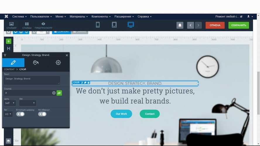 - многослойность (можно наложить текст, картинку на картинку, кнопку, видео – до 6 слоев, в PRO версии их 16), можно настроить видимость слоев для разных типов устройств;