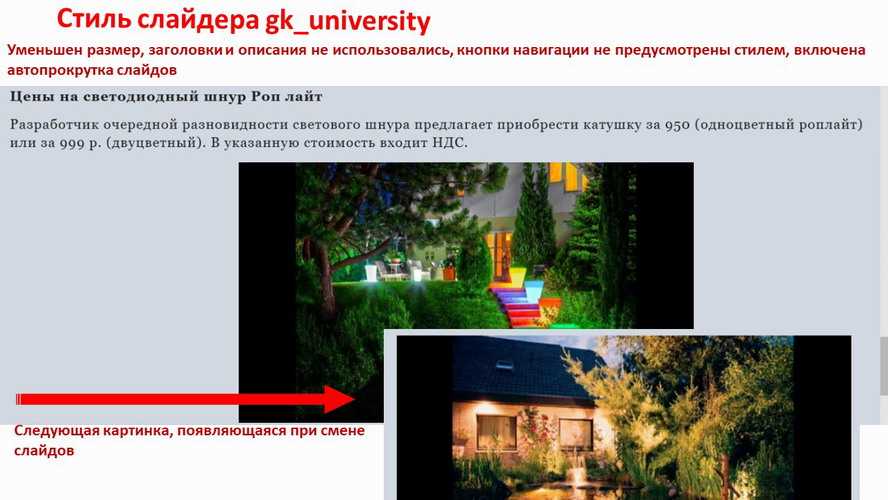 - возможно без «конфликтов» вывести несколько слайдеров на одной странице;