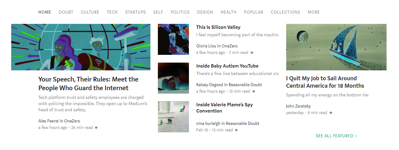 Вот так выглядит домашняя страница Medium, если у изображений выставлено свойство на светло-голубой (lightblue) и на :