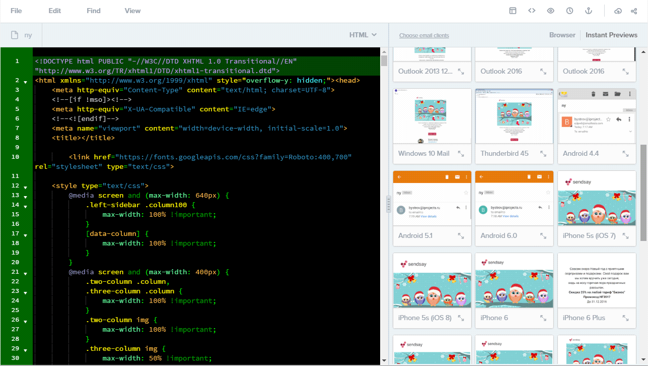 4) Шаблоны, протестированные на популярных почтовых клиентах.