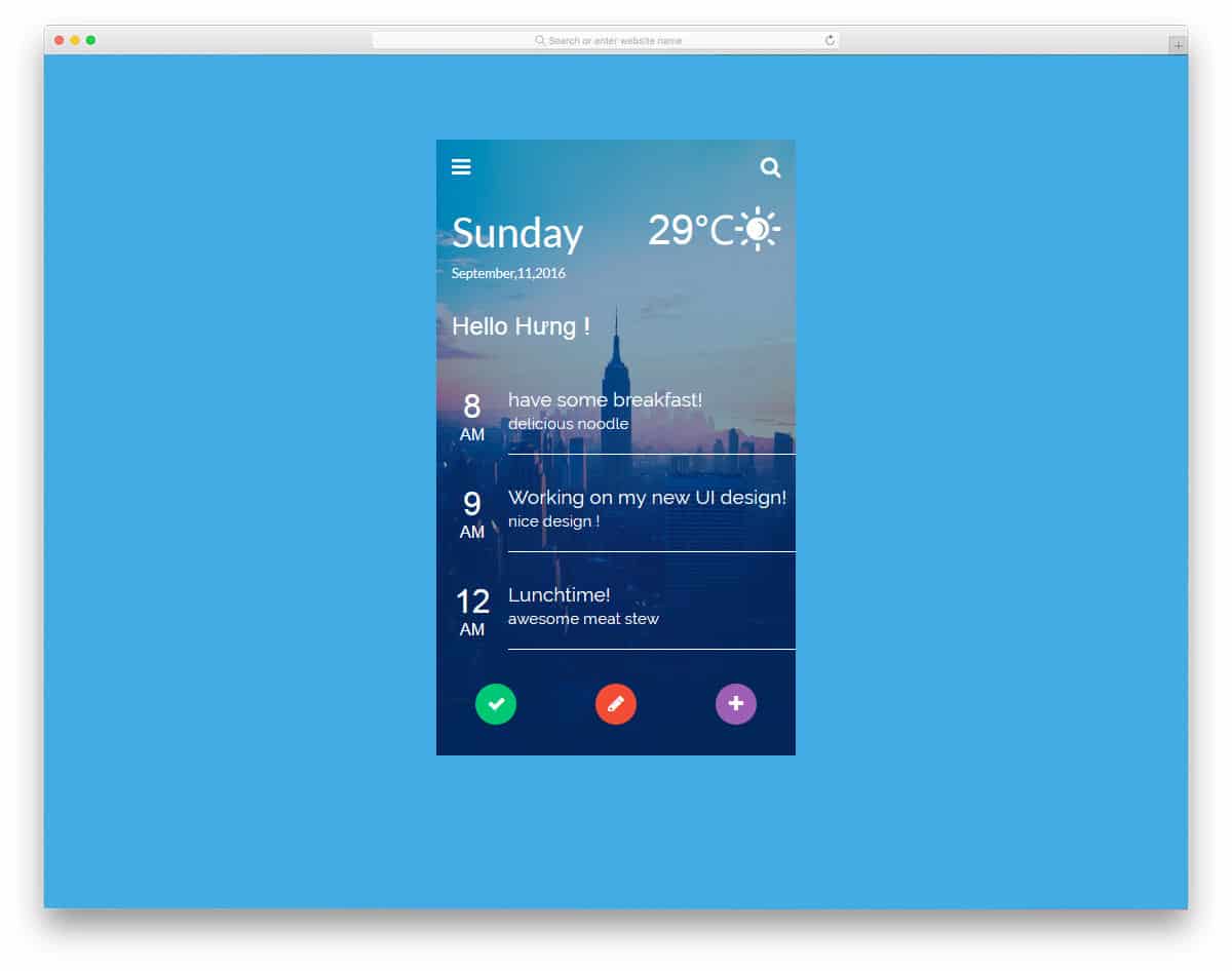 UI Design Morning Timeline is another timeline design for mobile applications. The default design is made for the calendar and other application related to it. Each part of the timeline is treated as a separate entry, where you can note your appointments. Horizontal lines are used to make each entry distinct from others. The developer has given you a basic design, hence the functions are not completely working. You have to manually work on the features and options you like to add to this timeline design. The developer has shared the code script in the CodePen editor, hence you can visualize the customizations before using it on your project.