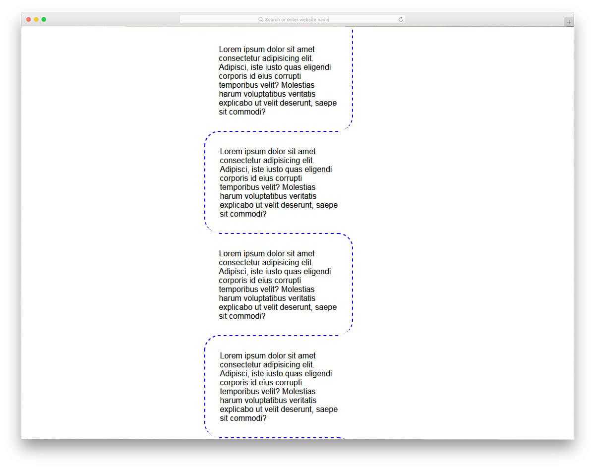 This timeline design is a modified version of the Vertical Left and Right Timeline timeline design mentioned above. In this design, the curves and the lines are kept short to give you more spaces on the side. Between each curve ample amount of space is given so that you can add long texts without any trouble. Dotted lined with any junction points is used in this timeline design. But as always you can add the features and the options you want. Not only the design is kept simple, but the code structure is also kept simple. This one is designed purely using CSS3 script, hence working on it won’t be an issue for the developers.