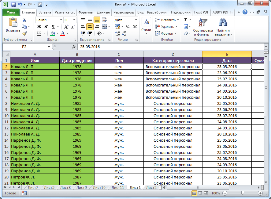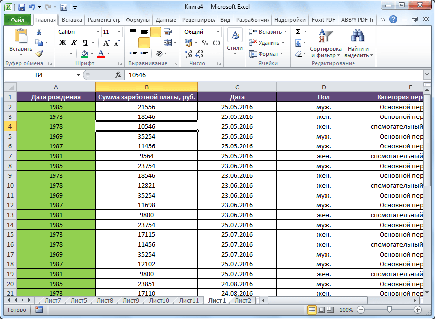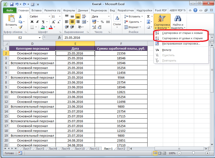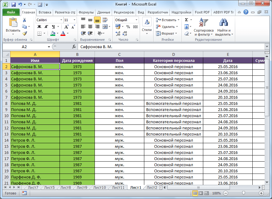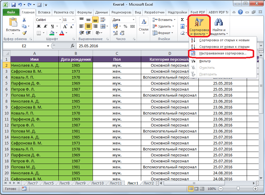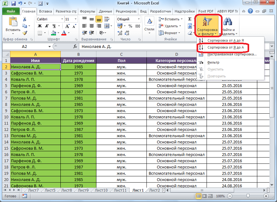 Работа в Excel c фильтром и сортировкой