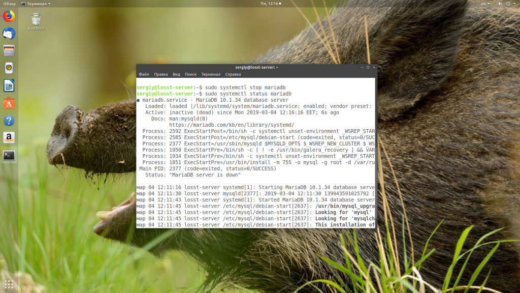 Теперь можно подключиться к MariaDB как пользователь root без пароля: