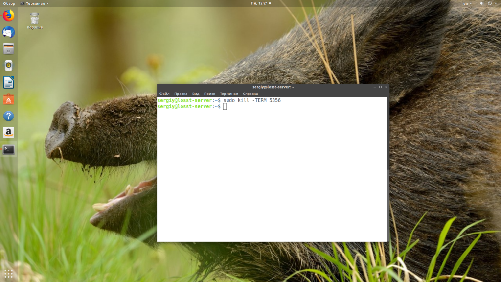 Подождите минуту, чтобы всё успело сработать как нужно, а затем остановите этот процесс. В консоли команда сообщит started as proccess и PID процесса, этот PID нам и нужен, чтобы его остановить. Например: