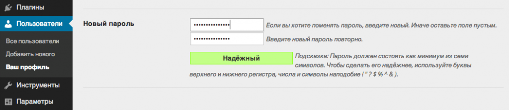 Обратите внимание на шкалу надёжности, которая поможет вам выбрать более длинный и надёжный пароль