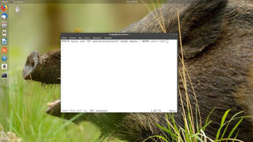 Примечание: если команда ALTER USER не работает, то это обычно является признаком более серьёзной проблемы. Тем не менее вместо этой вы можете попробовать UPDATE … SET для сброса root пароля: