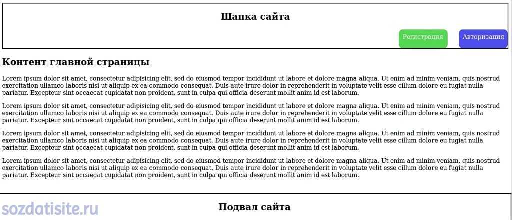 Шапку и подвал сайта вынесем в отдельные файлы, header.php и footer.php. Их будем подключать на всех страницах. А именно на главной (файл index.php), на страницу с формой регистрации (файл form_register.php) и на страницу с формой авторизации (файл form_auth.php).