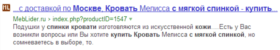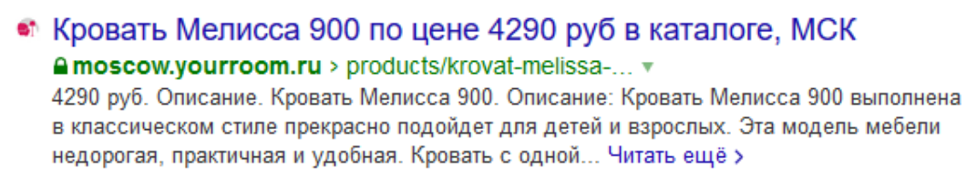 Сниппет с использованием семантической разметки — в нем указана стоимость, отмечено описание товара: