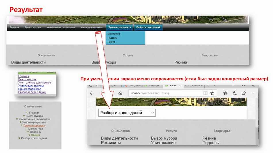 Теперь можно проверить результат с компьютера, затем со смартфона (достаточно уменьшить размер браузера на ПК, чтобы убедиться, что модуль работает как полагается).