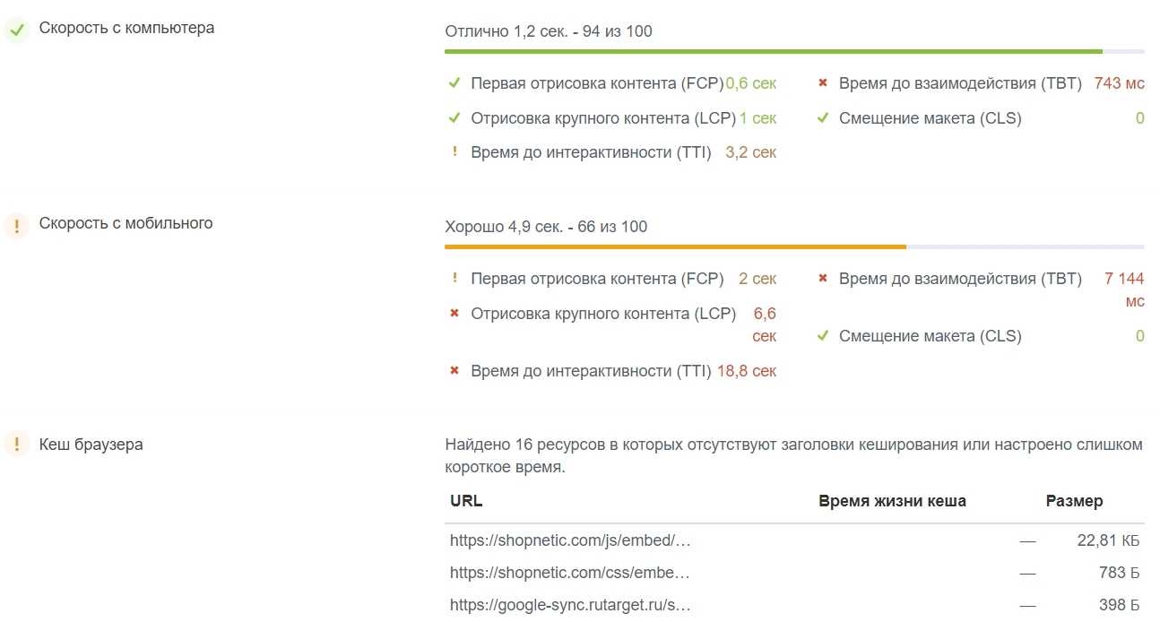 Проверить скорость загрузки сайта можно с помощью сервиса «Анализ сайта». Он проверит загрузку в соответствии с новыми требованиями поисковиков и даст советы, что сделать, чтобы ее улучшить.