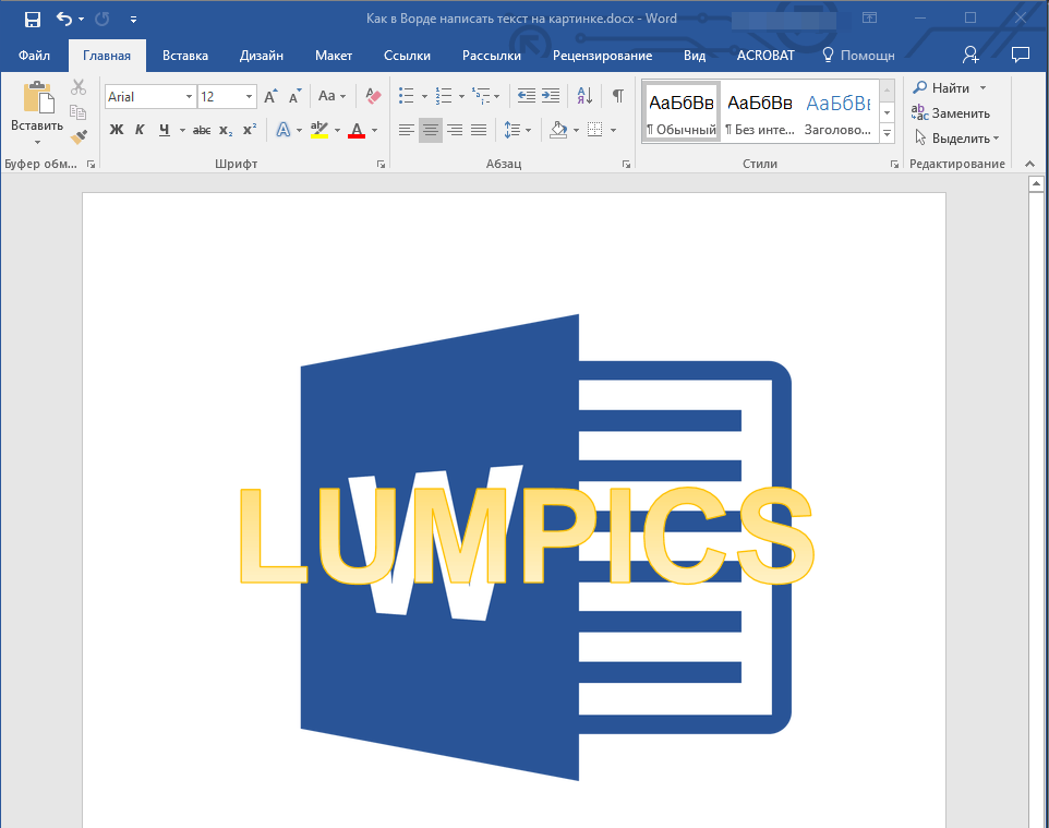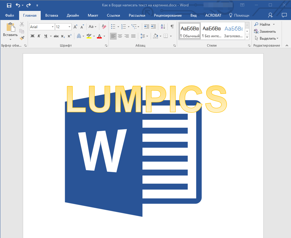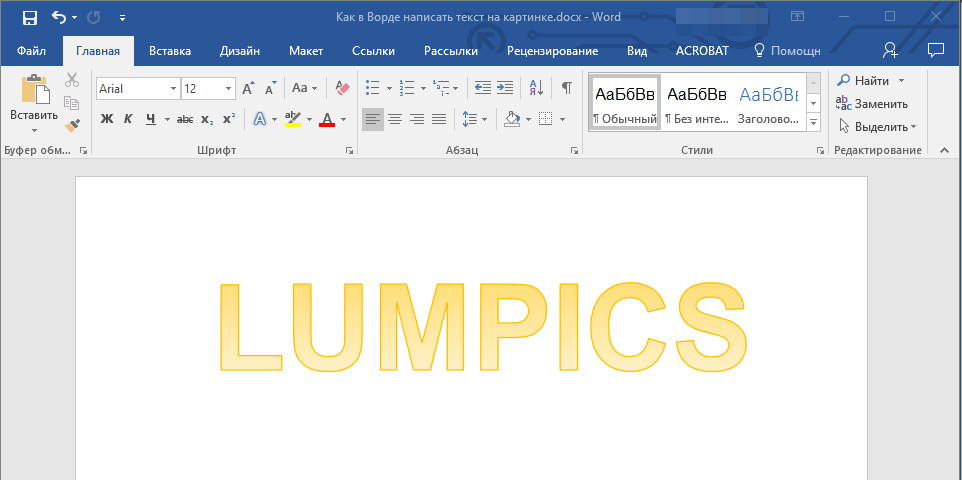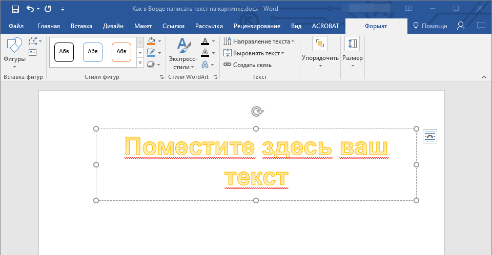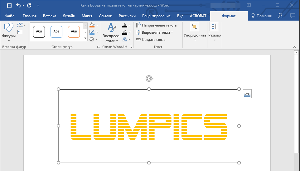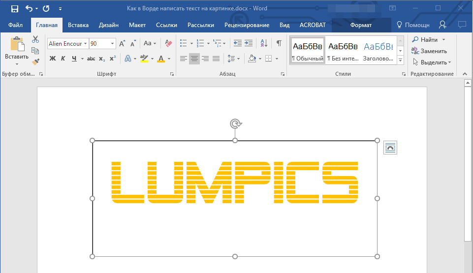 6. Готово, вы наложили надпись в стиле WordArt поверх изображения.