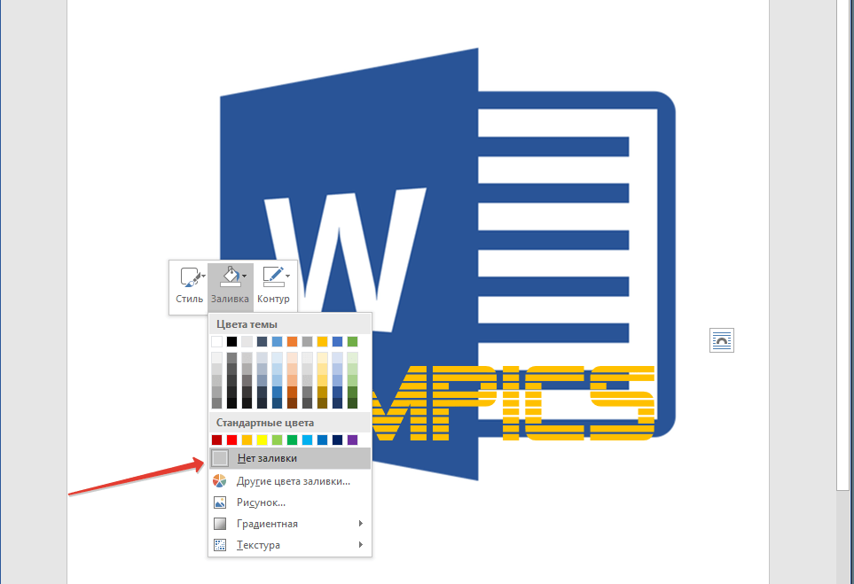 - Совет: Если текстовое поле отображается в виде надписи на белом фоне, перекрывая таким образом изображение, кликните по его краю правой кнопкой мышки и в разделе “Заливка” выберите пункт “Нет заливки”.