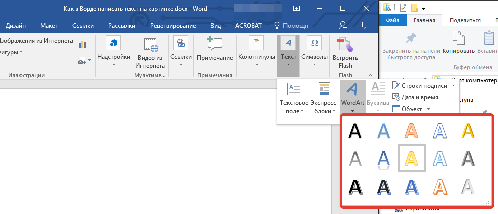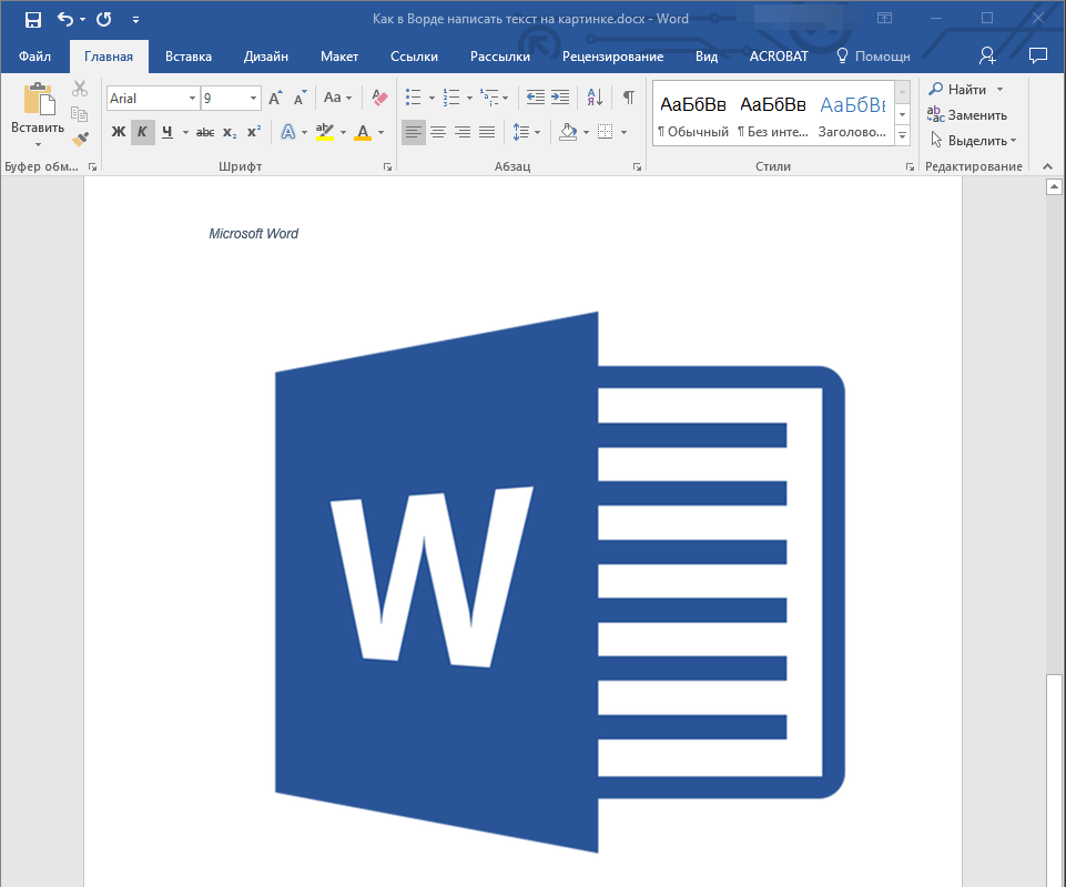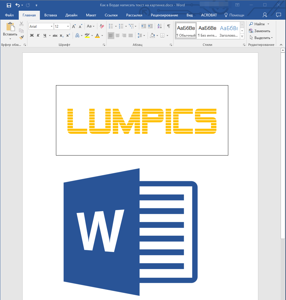 Существует два метода, с помощью которых можно наложить текст поверх картинки — это использование стилей WordArt и добавление текстового поля. В первом случае надпись будет красивая, но шаблонная, во втором — вы имеете свободу выбора шрифтов, типа написания и форматирования.