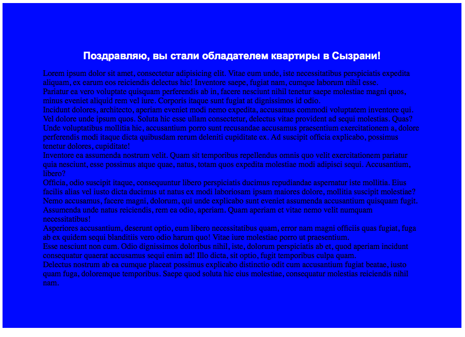 При верстке посадочных страниц можно встретить блоки с большим количеством свободного пространства внутри. Пример: